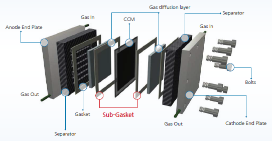 SG系列是氫燃料電池中質(zhì)子膜(PEM)的結(jié)構(gòu)支撐的粘合劑膜